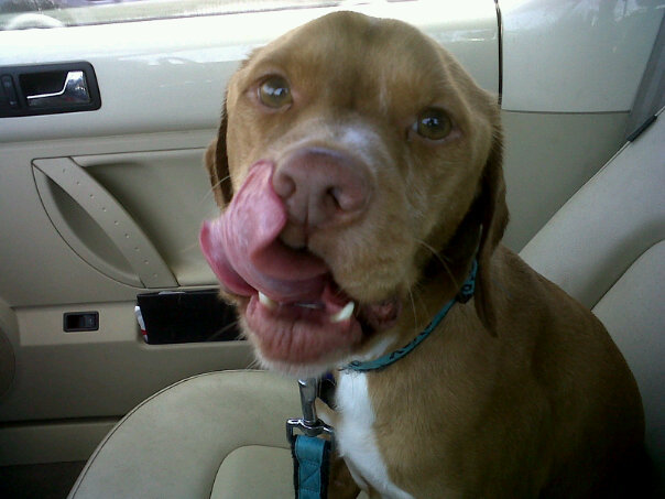 We also went for a visit to the vet this week for a checkup. His jaw is healing really well, right on track. He’s got 6 more weeks with the wire and then it can come out. But you can see in these 2 new pictures that the wire isn’t at all visible; he looks just like a normal doggie!