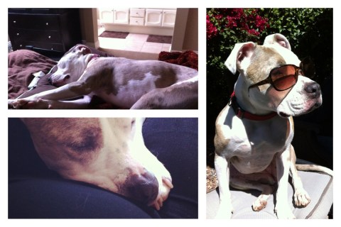 You may remember our post about a sweet pittie with a broken pelvis who needed a foster. You can find it HERE.